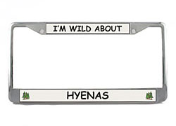 Wild is definitely the word, when it comes to describing our "I'm wild about." Hyena License Plate Frame. An easy to read black and white font, with tiny corner decals, our Hyena License Plate Frame will have you driving in style while onlookers gush over your new found glory. Made of a sturdy chrome metal that has been shined to perfection, our Hyena License Plate Frames conveniently fit most cars and trucks in the USA. License Frame measures approximately 6 x 12 inches in size.