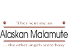 Perhaps your Alaskan Malamute Tee Shirt explains the intangible glow around your dog. Is that fluff of a tail really a celestial propeller? The 7 x 2.5 inch message printed on the front of our Tee Shirt proclaims that your pal is an angel. There is no doubt once you have hiked, back packed, or had a swim with your strong and affectionate pet. Our Alaskan Malamute Tee Shirt is subtle yet conveys pride. Advertise this breed with one of our Alaskan Malamute Sweatshirts. This is an association to promote with our premium weight, durable, and guaranteed products.