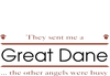 Uniquely made for every dog owner, our angelic Great Dane Tee Shirt will remind onlookers of the importance of their own fluffy friend. Our Great Dane Tee Shirt is unique in the aspect that it honors even the most large and loyal of dogs with the soft comfort they deserve. Available in varying youth and adult sizes, each Tee Shirt is made of casual premium weight fabric and arrives at your home 100 percent guaranteed. Print measures approximately 7 x 2.5 inches. Great Dane Sweatshirts also available.
