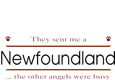 Your Newfoundland Tee Shirt announces the delivery of an angel. The message declares your good fortune in 7 x 2.5 inch front-imprinted lettering. Our Newfie Tee Shirt is premium weight, durable, and guaranteed, as are our Newfoundland Sweatshirts. Pair them up for comfort down by the water's edge, your pal's second home. This 100-pound plus dog is equally at ease on land or in the water, and has a lifesaving instinct. Packaged along with a gentle disposition, no wonder we look for the wings in all of that fur. Our Tee Shirt is a fitting gift for any owner and is available in several colors and sizes.