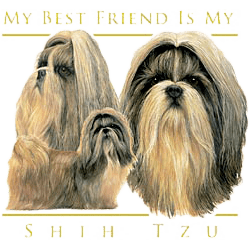 The Shih Tzu 100% cotton t shirt is as comfortable as it sounds. But the Shih Tzu t-shirts are also cute as a button, as you can see. The image on front measures 11 inches square and is also available on our sweatshirts. We offer a bunch of sizes and colors to choose from. The Shih Tzu shirts show off your fluffy friend to the world. You'll paint quite a pretty picture as you wear your shirt and walk your dog down the street.