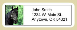 A midnight beauty, the picture on our Black Horse Address Labels will radiate off your envelope like no other! Each of our custom printed Black Horse Address Labels allows for four lines of font featuring your very own name, home, street and state. With classic rounded corners, each Black Horse Address Label measures approximately 2.625 x .875 inches in height and length. With a peel & stick, no licking back for easy use, these Return Address Labels are at the front of the finish line.