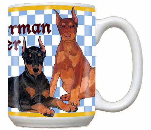 It is so hard to find dobie stuff. I ordered this doberman pinscher mug for a gift, she will love it. You also have a nice selection of the red dobies as well which is my girl .