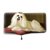 The color illustration on the front of our Maltese Tshirt perfectly depicts the royal history of this breed. In a 14 x 9 inch image on our Maltese Tshirt, this pet is looking up from a burgundy tasseled pillow, with a matching bowed topknot. This tiny yet fearless toy dog is distinguished by its all-over long, silky coat. Gentle while energetic and playful, this is one prince or princess that looks just right on our Maltese Sweatshirts or on a Tshirt. All are premium weight, durable, and guaranteed.
