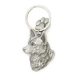 Both functional and fun, this classic Australian Cattle Dog keychain is hand finished for superior detail. Made from pewter, each Cattle Dog key chain is designed by an artist who is known for bringing breeds to life with her realistic sculpting. Don't leave home without your Australian Cattle Dog keyring, it will be enjoyed by all dog enthusiasts. Approximate size on the Cattle Dog key ring is 2 inches.