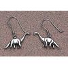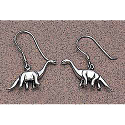 These playful and attractive Dinosaur Earrings will add a bit of prehistoric flair to any outfit. Hand-made from sterling silver, these sparkling Dinosaur earrings are sure to garner compliments everywhere you go. The unmistakable shape of this ancient plant-eating giant will add a new dimension of character to your Jewelry collection. These unique loop Earrings measure approximately 1 x 3/8 inches. A deluxe set of Dinosaur Earrings also makes a great gift for friends and family members of all ages.