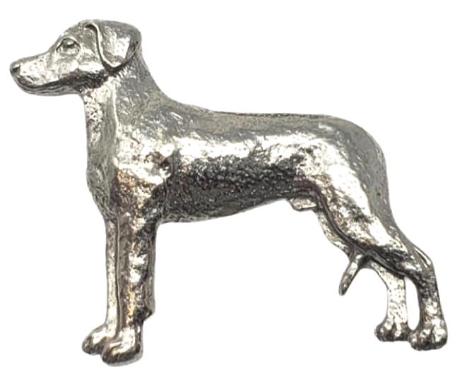 Go on the hunt with the famed African Lion Hound when you wear this shining Rhodesian Ridgeback Pin. Made from elegant antiquated looking pewter, the Rhodesian Ridgeback Pin will be a stunning addition to anyone's Jewelry box. Rhodesian Ridgeback Pins measure at approximately 1 5/8 x 1 inch and feature 2 strong push on clasps to keep it securely in place on any hat, jacket or lapel. The perfect gift for men and women alike, these regal Dogs will steal your heart and make you pride of the wild.
