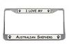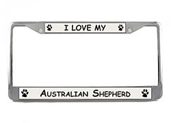 Finally, the Australian Shepherd license plate frame, for true Aussie fan. This Australian Shepherd license plate frame is manufactured from chrome, selected for its great look and durability. Get one for the front and the back of your car, or save your Australian Shepherd license plate frames for your next social gathering and give them as a personal gift. The compliments will never stop when you're sporting these at your next tailgate party. Our Australian Shepherd license frame fits most cars, measuring about 6 x 12 inches.