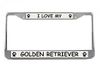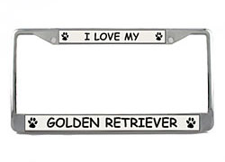 Enjoy having this Golden Retriever license frame on the back and front ends of your car. It will be obvious how much you love your favorite Golden Retriever when you show off the Golden Retriever license plate frame. The Golden Retriever license plate frame is made of shiny chrome metal, and fits around most licenses plates of cars and trucks in the USA. Durable and measuring 6 x 12 inches, this license frame will show be a clear sign of just how wild you have gone over your favorite Golden Retriever!