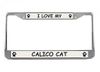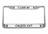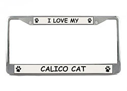Pay tribute to your favorite furry companion at home on the couch while you drive about with our Calico Cat License Plate Frame. Of all the colors and markings, if you love calico the most you'll want to advertise that to the world with this chrome metal Calico License Plate Frame. Don't be shocked if you start to notice that people pass you by and glance over with big smiles- it just means they've seen your license frame and must also share a love for these beautiful kitty cats. Calico Cat License Plate Frames measure 6 x 12 inches.