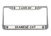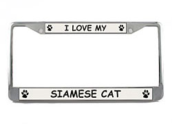 The Siamese Cat license plate frame is the ultimate way to show off your car and at the same time display your love for a fine feline breed. This license frame tells the simple truth - you love your Siamese Cat. It measures 6 x 12 inches and fits most US vehicles. Made of chrome, the Siamese license plate frame adds classy detail to your automobile. Siamese Cat license plate frames make a great gift item for any cat lovers you know.