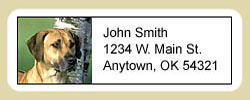 The personalized Rhodesian Ridgeback address labels will make all your mail correspondence uniquely you. Plus it will let your neighborhood's letter carrier know you have a protective pet with chasing tendencies watching out the window. The Rhodesian Ridgeback address labels display your name and address with an image of your pet. Each Rhodesian Ridgeback address label is peel & stick to save you time. Only your pet will be disappointed in their easy, no licking required application. The return address labels measure approximately 2.625 x .875 inches and have round corners.