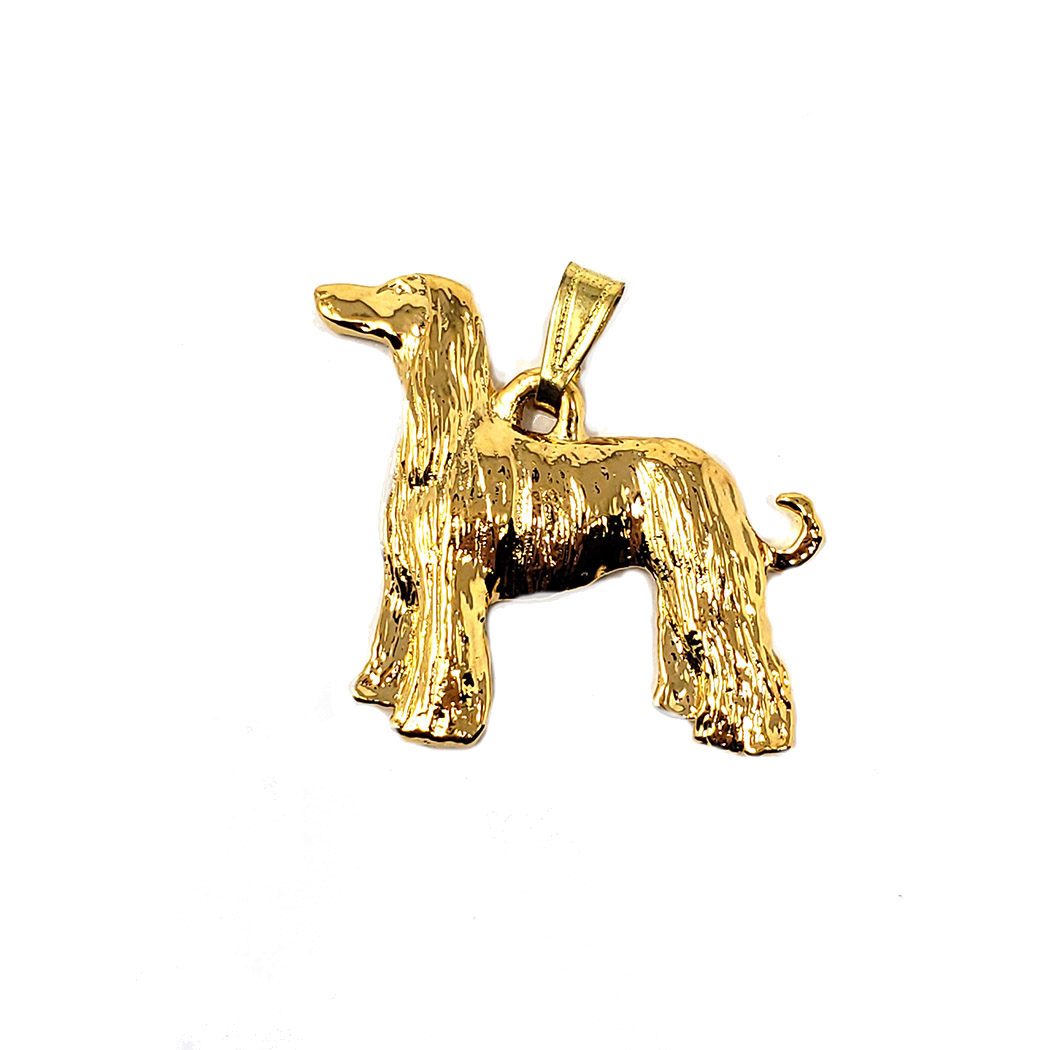 This Afghan Hound 24K Gold Plated Pendant is perfectly delightful. Add originality to your wardrobe when you bring home this unique Afghan Hound pendant. Handcrafted from gold plated pewter and finely detailed, our pendants are a wonderful piece of jewelry and are sure to become a fast favorite! The Afghan Hound 24K Gold Plated Pendant is a gleaming addition to your jewelry collection. This pendant measures approximately 1 1/4 x 1.3 inches and also makes a lovely gift. Show the world the bravado and strength of the Majestic Afghan Hound with this stunning pendant.