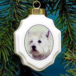 Decorate your Christmas tree in style with this West Highland Terrier ornament. Our adorable Westie ornament depicts the cute and lovable West Highland Terrier and makes a perfect addition to the holiday season. Each of our West Highland Terrier ornaments is made of delicate high quality porcelain and measures approximately 2 1/8 x 3 3/8 x 7/8 inches. When your Westie ornament is decorating your tree this holiday season, you can be sure that it will bring happiness to all who see it.