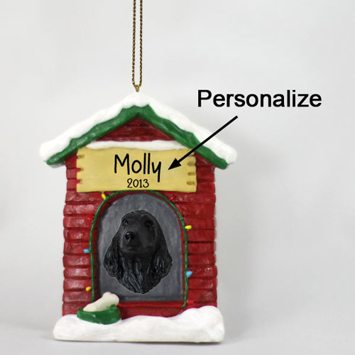 Sweet and simpering Black and Tan Cocker Spaniel Personalized Dog House Ornament will ...