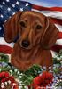 Putting the red in red, white and blue, your home will be golden with the patriotic appeal of your Red Dachshund House Flag. With beauty radiating from her loving eyes, everyone will be completely won over by this detailed 28 x 40 inch flag with a 2 year no rip or fading guarantee. Crafted of 2 pieces of fabric sewn back to back, your darling dog will grace the neighborhood for years to come on this durable and gorgeous Red Dachshund House Flag.