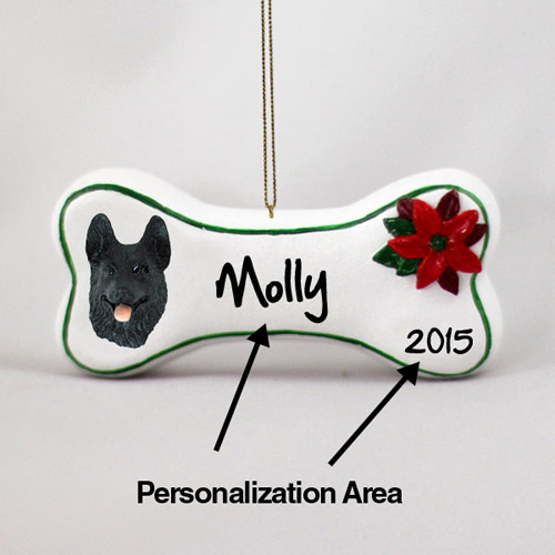German Shepherd Personalized Dog Bone Christmas Ornament Black