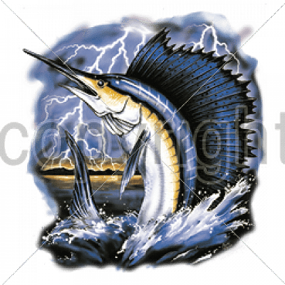 You won't need to fish for compliments when you give this marvelous Marlin Thunder and Lightning Tee Shirt or Sweatshirt print as a fashionable gift. 12 x 13 inches and completely endearing, this Marlin storm will make a huge splash this season.