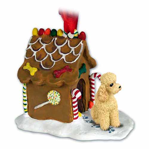 Poodle Gingerbread House Christmas Ornament Apricot Sport Cut