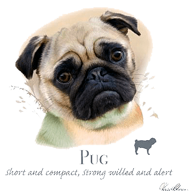 Custom made to cuddle, give the precious Pug by Howard Robinson Tee Shirt or Sweatshirt to everyone you love. His sweet little face beams on a sublime 9.5 x 10.5 inch Pug print that will make a time honored gift for one and all.