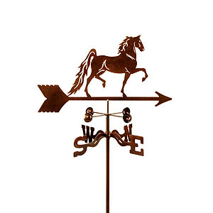 This beautiful Weathervane will charmingly convey your Saddlebred Horse loving style every time nature's wind breezes through your garden. This functional, decorative and superb quality Saddlebred Horse Weathervane assembles in minutes and offers endless delight for years to come. A great gift idea for a special garden or home too.