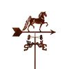 Our Saddlebred Horse Weathervanes create a fantastic display when pole-mounted in a garden, but can also be attached to any post or deck railing or roof-mounted on your house, cupola or shed. The top is approximately 21 inches wide by 8 - 11 inches tall. The wind cups and direction indicator section is 15 inches across. For your convenience, this Saddlebred Horse Weathervane comes complete with your choice of garden, post, deck, or rooftop mounting hardware. The Garden Stake is 60" high and the Deck Mount is 15" high and attaches to any horizontal surface with a 3" x 3" mounting plate.