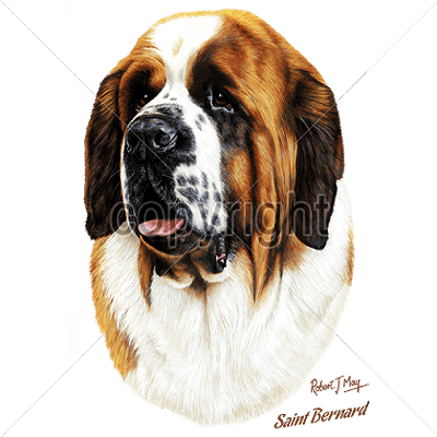 Let the hero of the hills bring them alive for you with this stunning Saint Bernard Tee Shirt or Sweatshirt Design by artist Robert May. This huggable hero makes the ultimate gift on a gorgeous 9 x 14 inch St. Bernard Design that will save the day.