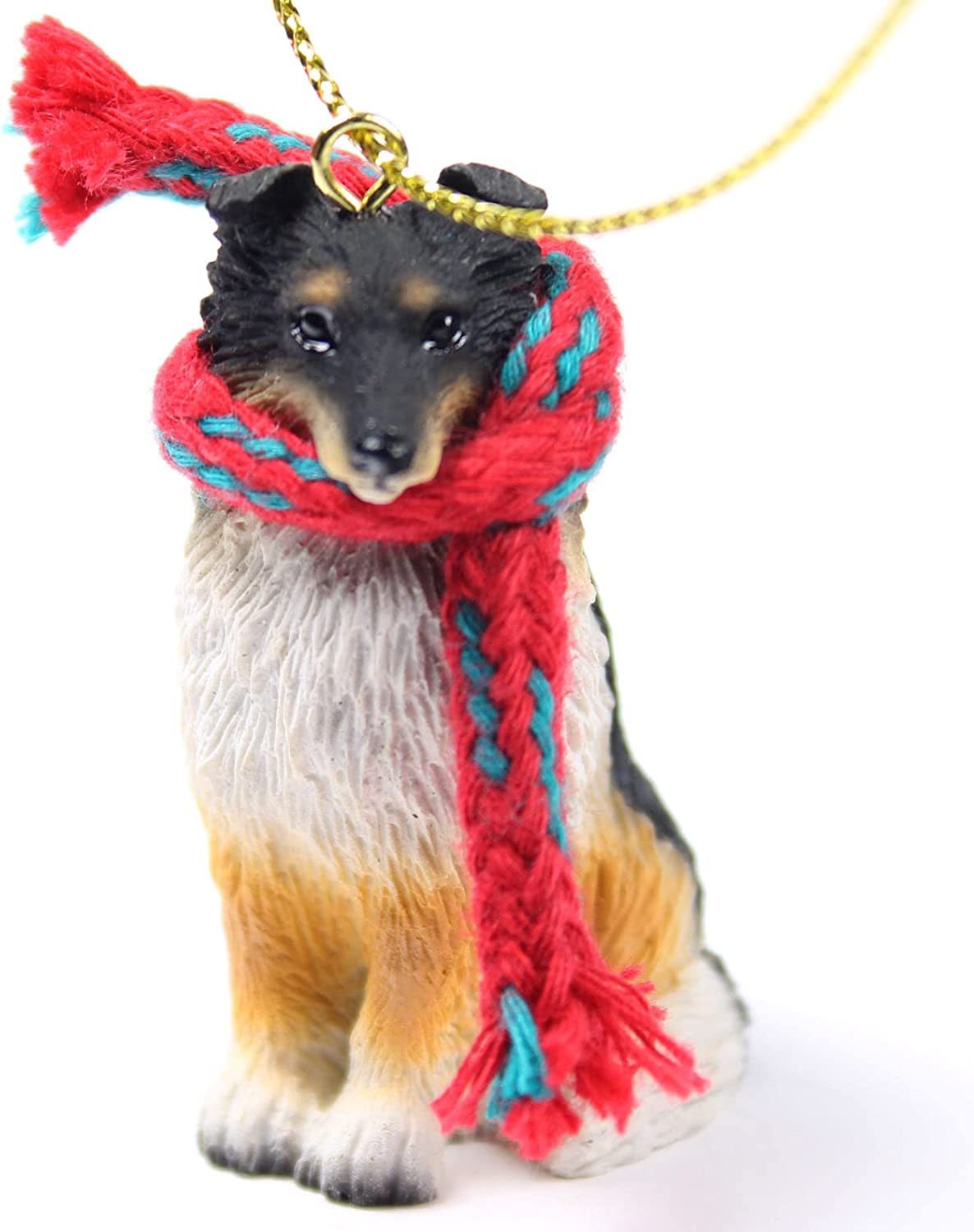 Our Shetland Sheepdog Tiny One Christmas Ornament Tricolors fit any place you want to make a statement. The 2" stone resin ornament is delicately detailed and hand painted to give it a realistic life-like look. These delicate Shetland Sheepdog Tiny One Christmas Ornaments will become your best friend while hanging from your tree, sitting on your dashboard, resting in your purse or just hanging around on your keychain. They also make a perfect gift for any Shetland Sheepdog enthusiast.