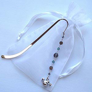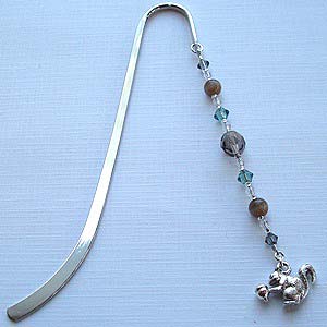With our Squirrel Bookmark you will no longer have to squirrel around for the page you were reading. Beautifully hand made in the USA, this friendly Squirrel Bookmark features a slender Shepherd's hook that perfectly contours to your book of choice. Attached is a 5 inch chain made up of glittering Swarovski Crystals sprinkled with lovely Czech Glass Beads that dangles quaintly from the book. The unique Squirrel Bookmark is perfectly packaged in a sheer Organza pocket with lace ties ready to present to the special person in your life.