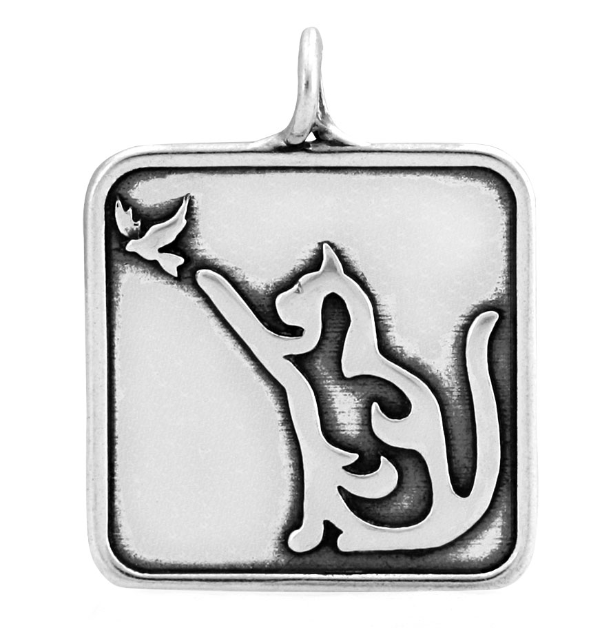 Are you more of a cat person? Do you prefer soft purrs to loud barks? Is your kitty the ultimate source of joy in your life? If your answer is a resounding yes to all these questions, you are at the right page! Here is our .925 Sterling Silver Cat W/Bird Necklace that is sure to melt your heart with its beauty and charm. Showcasing a kitty interacting playfully with its feathered buddy, this necklace is sure to attract a lot of attention from fellow animal lovers. The 1" X 3/4" pendant and the 18-inch .925 sterling silver box chain with a lobster clamp have been handcrafted with love exclusively in the USA.